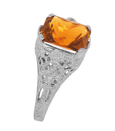 Edwardian Filigree Citrine Ring in Sterling Silver