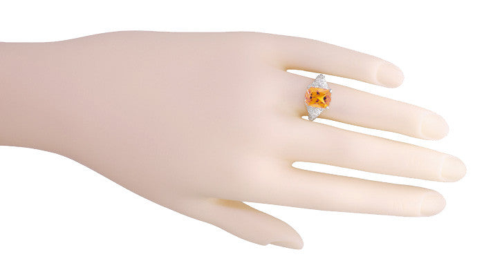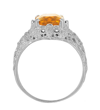 Perfect for anyone who loves the earthy colors of fall, this wonderful filigree antique inspired citrine ring measures 10.5 millimeters wide by 11.4 millimeters long and sits 6 millimeters (1/4 inch) off the finger.