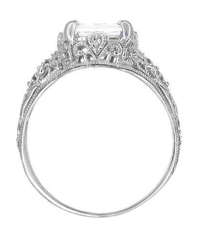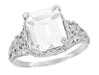 Edwardian Filigree 5.6 Carat Emerald Cut Cubic Zirconia ( CZ ) Ring in Sterling Silver