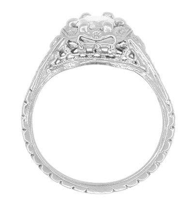 Art Deco Filigree Flowers White Topaz Promise Ring in Sterling Silver