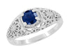 Edwardian Floral Filigree Blue Sapphire Dome Promise Ring in Sterling Silver
