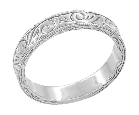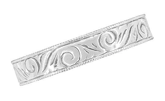 Art Deco Scrolls Engraved Wedding Band in Sterling Silver - 4mm Wide