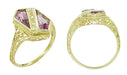 Art Deco Amethyst and Diamond Shield Filigree Ring in 14 Karat Yellow Gold