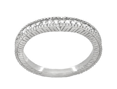Art Deco Carved Wheat & Diamonds Curved Wedding Band in 14K or 18K White Gold