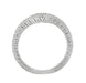 Crafted in 14K or 18K white gold, this curved Art Deco wheat engraved diamond wedding band features a deeply carved wheat pattern around the 3 outward facing sides of the band with beaded milgrain edges.
