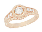 Hand crafted in 14K rose gold, this classic and elegant companion Art Deco wheat wedding band is set with 16 round brilliant cut diamonds for a total carat weight of 0.16 for the ring. Customize your heirloom band with your choice of natural diamonds or lab created diamonds!