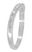 This finely detailed 1920's design curved platinum wedding ring measures 2.4 millimeters wide at the top of the ring and tapers down to 2.1 millimeters wide at the bottom of the band.