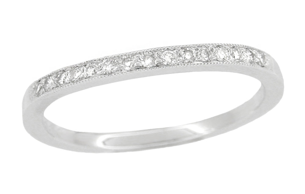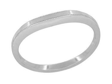 Milgrain Edge Curved Diamond Wedding Band in Platinum