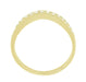 This classic 14K yellow gold curved diamond wedding band features 15 round brilliant cut diamonds of high F/G color and VS clarity for a total of 0.12 carat for the ring. Antique inspired delicate beaded millgrain edging frames the shimmering diamonds, creating an elegant effect for this contoured yellow gold diamond band. A high polish finish completes the traditional look.