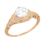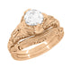 Art Deco Filigree and Wheat Engraved Curved Wedding Ring in 14 Karat Rose Gold