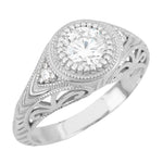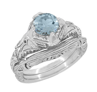 Art Deco Filigree and Wheat Engraved Curved Wedding Ring in White Gold