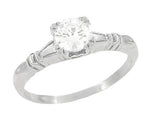 This contoured platinum Art Deco wedding ring is artisan made to coordinate with our Art Deco Hearts and Clovers Engagement Ring styles. As a symbol of prosperity, three sets of harvest bands adorn the top of the band, complimenting the design of the matching engagement ring. Crafted to order, it measures 3.2 millimeters wide at the top of the ring and 1.3 millimeters wide at the bottom of the band, and this lovely vintage style platinum wedding ring sits 4.1 millimeters off the finger.
