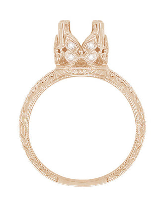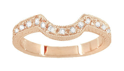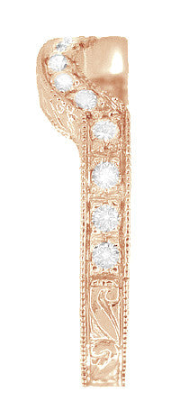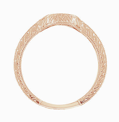 Art Deco Rose Gold Carved Wheat and Scrolls Hugger Diamond Wedding Band