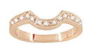 This rose gold curved wedding ring is designed to beautifully complement R178R, our 1 Carat Filigree Engagement Ring in 14 Karat Rose Gold, and the smooth and high polished rounded contoured inner side of this wedding ring is made to ensure that the rings fit smoothly and snugly together.