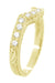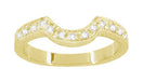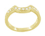 Hand crafted in rich 18K yellow gold, this classic Art Deco antique style yellow gold curved wedding ring shimmers with a row of 13 round brilliant cut diamonds of VS clarity and F/G color, securely four prong set into the top and sides of the band for a total diamond weight of 0.26 carat for the ring.
