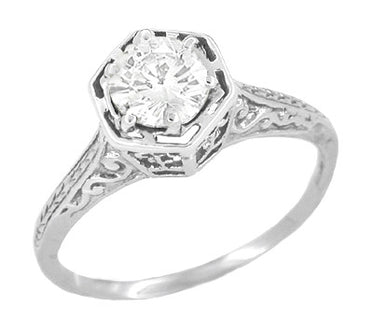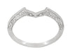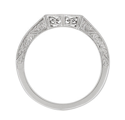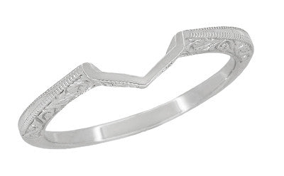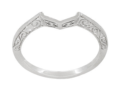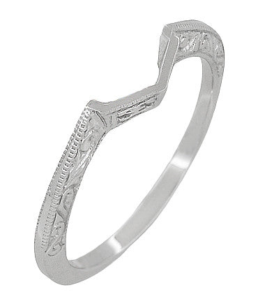 Contoured Art Deco Filigree Scrolls Wedding Band in 14 Karat White Gold