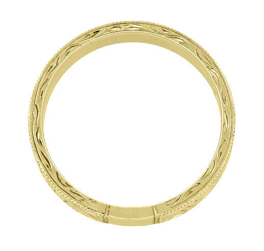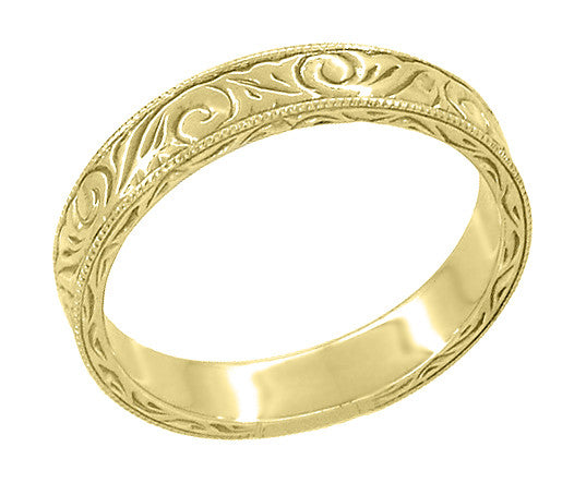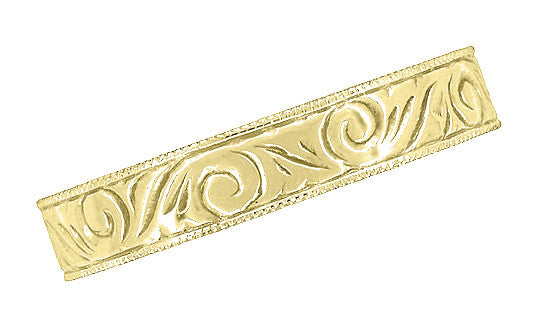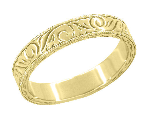 Men's Yellow Gold Art Deco Antique Scrolls Engraved Wedding Band - 10K, 14K or 18K