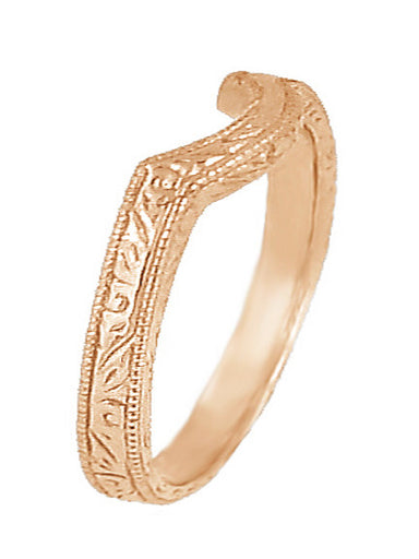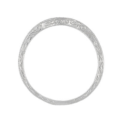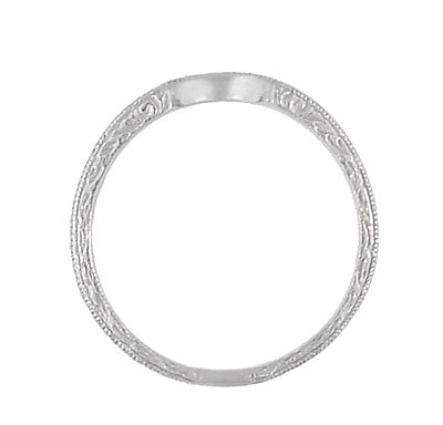 Art Deco Scrolls Engraved Curved Wedding Band in Platinum