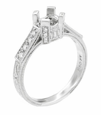 Platinum Art Deco Filigree Scroll Engraved Curved Diamond Wedding Ring