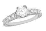 Art Deco Engraved Companion Diamond Wedding Ring in Platinum