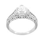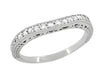 Art Deco Curved Filigree and Wheat Engraved Diamond Wedding Band in Platinum