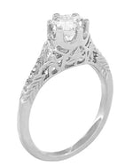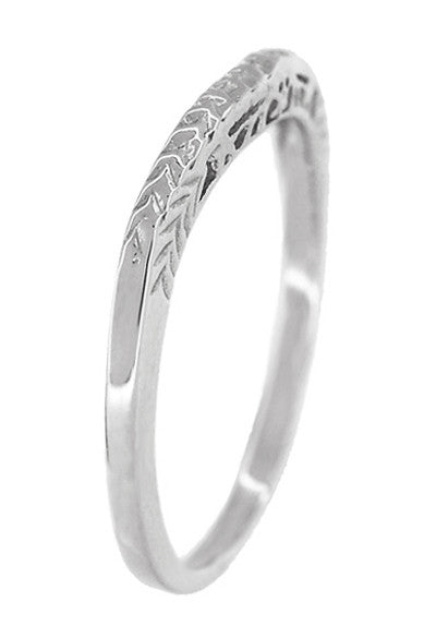 Crown of Leaves Art Deco Curved Filigree Engraved Wedding Band in 14K or 18K White Gold