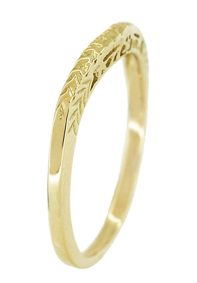 Art Deco Yellow Gold Crown of Leaves Filigree Curved Engraved Wedding Band - 14 or 18 Karat Gold