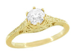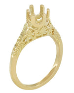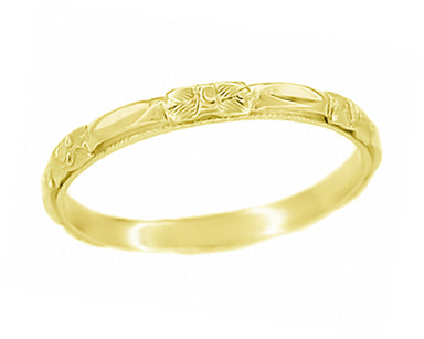 Yellow Gold Art Deco Crown of Leaves Curved Filigree Engraved Wedding Band