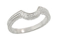 Art Deco Curved Engraved Wheat Wedding Ring in 14 or 18 Karat White Gold