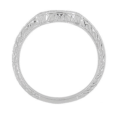 Art Deco Diamond Curved Engraved Wheat Wedding Ring in 18 Karat White Gold