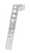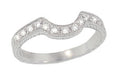 This lovely Art Deco vintage curved wedding ring style in 18K white gold features a shimmering row of 13 round brilliant cut diamonds across the top of the ring, of VS clarity and F/G color, securely four prong set into the top of the band for a total of 0.26 carat total diamond weight for the ring.