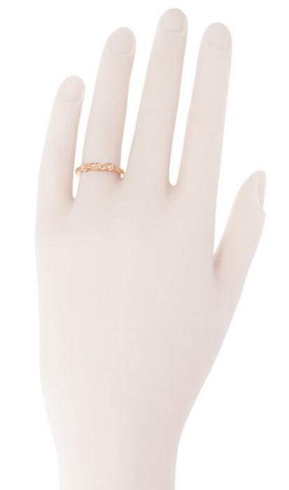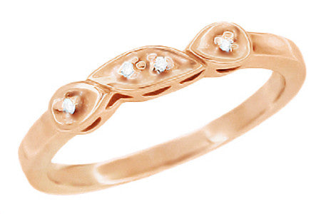 14 Karat Rose Gold Mid Century Retro Modern Filigree Diamond Wedding Ring