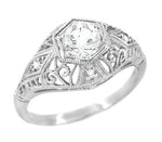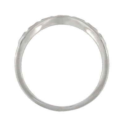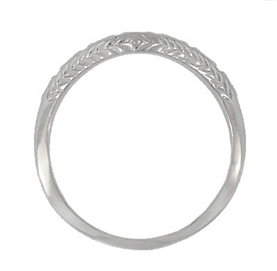 This lovely Art Deco platinum antique design hugger wedding ring features an engraved wheat pattern on the outward facing side of the ring and an olive leaf inspired pattern across the top of the band.