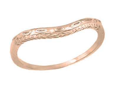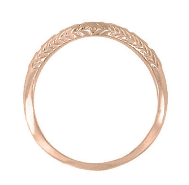 Art Deco Olive Leaves and Wheat Engraved Curved Wedding Band in 14 Karat Rose ( Pink ) Gold