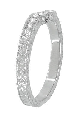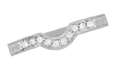 Royal Crown Curved Diamond Engraved Wedding Band in 14K or 18K White Gold