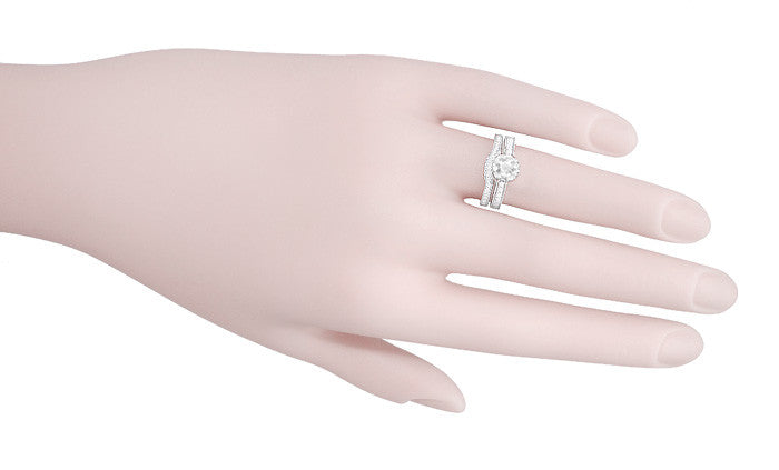 Made to order in your choice of 14K or 18K white gold, this wedding ring is designed to beautifully complement our Royal Crown Antique Style Engagement Rings and ring Settings in White Gold.