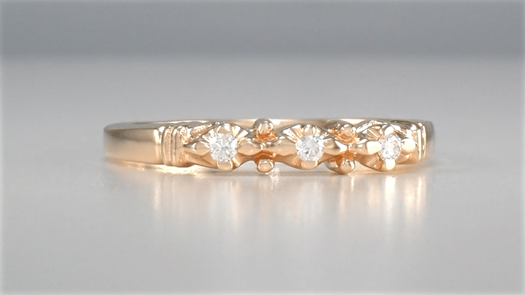 Artisan made to order, this timeless reproduction of an original 1950's era three stone diamond wedding band is perfect for a rose gold lover to wear and enjoy every day.