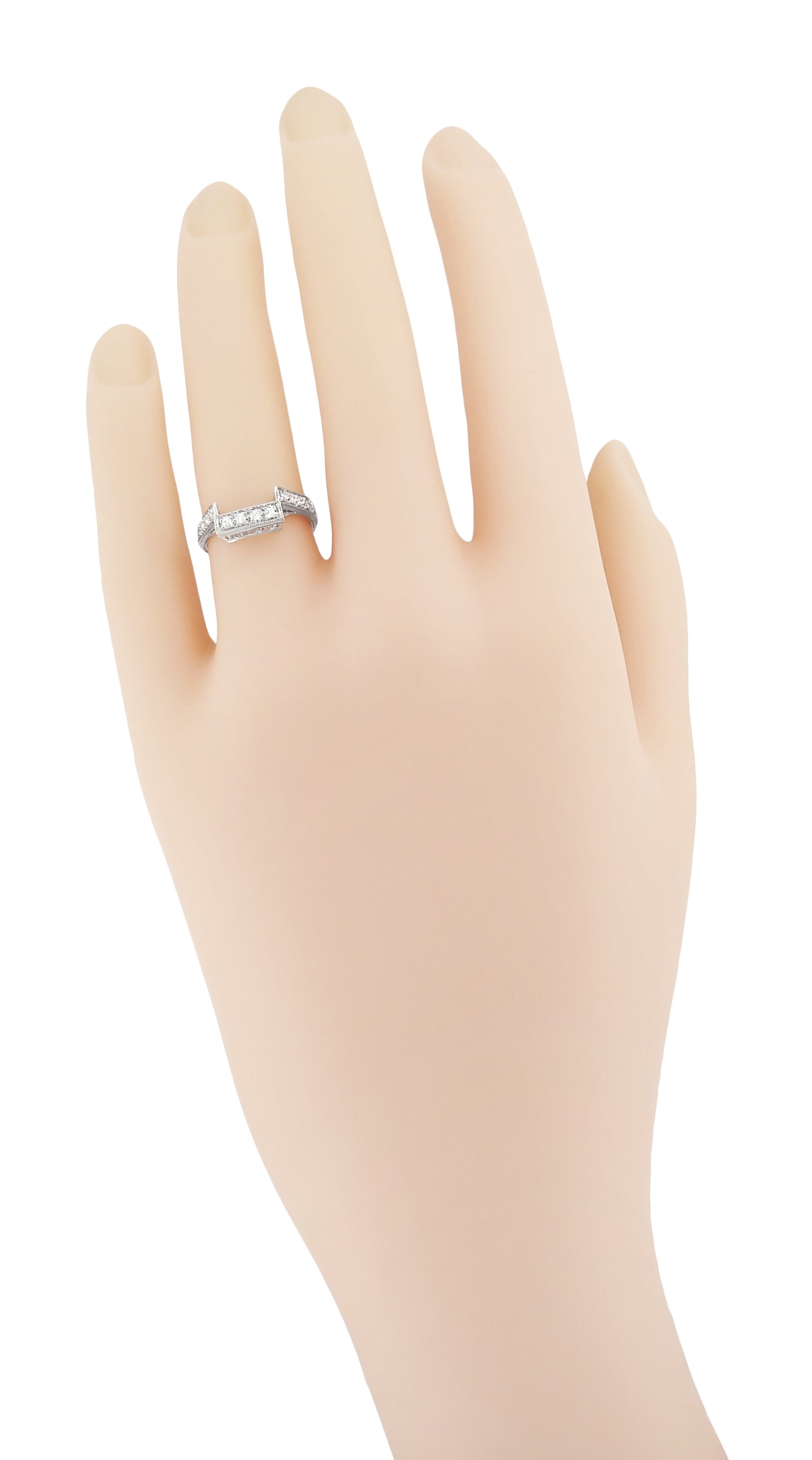 Art Deco Castle Filigree Diamond Companion Wedding Ring in Platinum