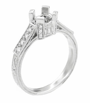 Curved Art Deco Platinum and Diamonds Engraved Filigree Sculptural Wedding Ring