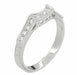 Art Deco Diamonds Filigree Scrolls Curved Wedding Ring in 18 Karat White Gold | Scroll Engraved Vintage Style Curved Band